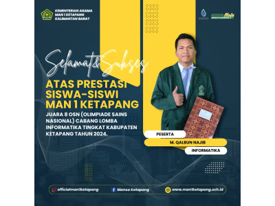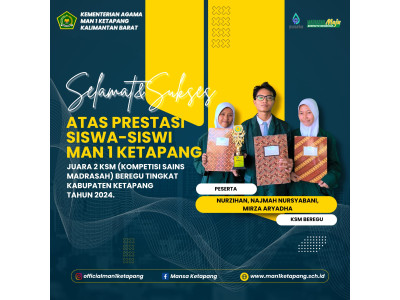 Ketapang, (Kemenag Kalbar)--- Prestasi membanggakan kembali diraih oleh siswa-siswi MAN 1 Ketapang. Utin Wulan Kurniasih, salah satu siswa berbakat dari